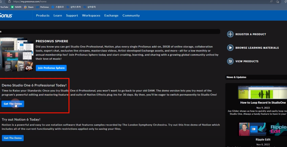 무료 프라임 버전에서는 상관없으니 [Go To My.PreSonus]를 눌러줍니다.