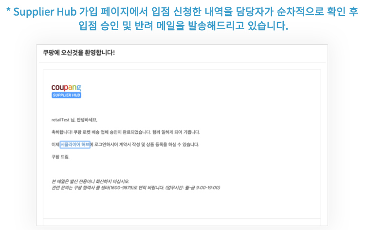 쿠팡 서플라이어 허브 홈페이지 바로가기
